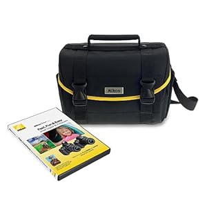 The Nikon DSLR starter kit is an easy way to ensure you're ready to start shooting right away. Includes a nylon case with dividers and a padded shoulder strap, and an instructional DVD describing camera settings.