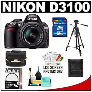 Buy Nikon D3100 Digital SLR Camera & 18-55mm VR Lens with 16GB Card + Filter + Case + Tripod + Accessory Kit this month to take advantage of these low prices and have your package shipped to you right away.