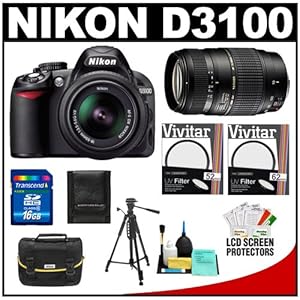 At our site, you will discover Nikon D3100 Digital SLR Camera & 18-55mm VR + Tamron 70-300mm Di Lens + 16GB Card + Filters + Case + Tripod + Accessory Kit available at our low prices. Shop now for this item and anything else we have available at our affordable prices.